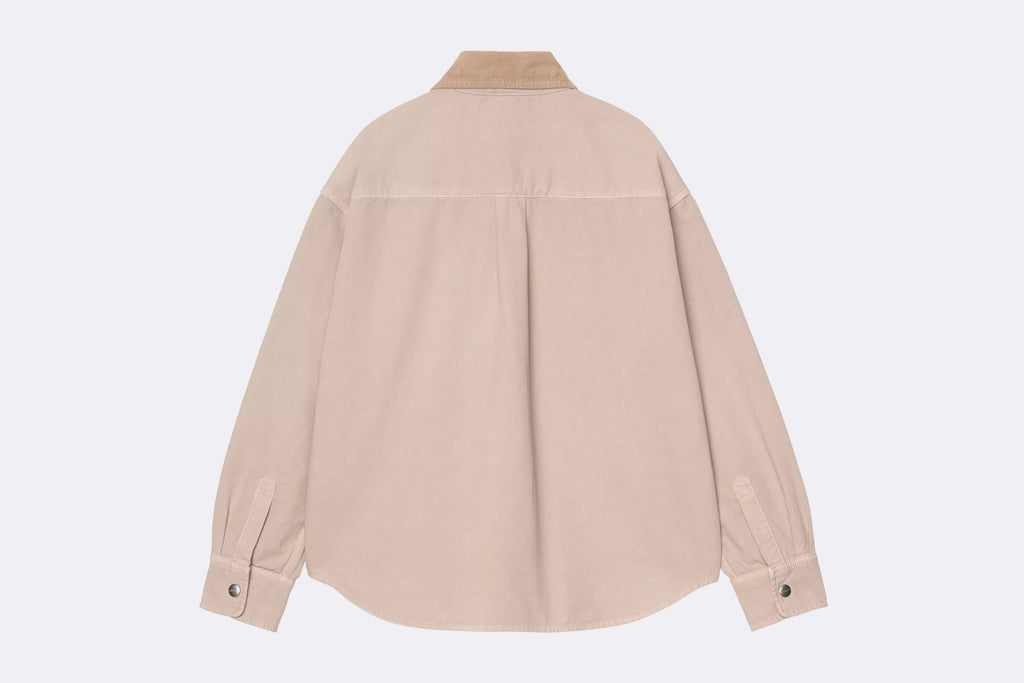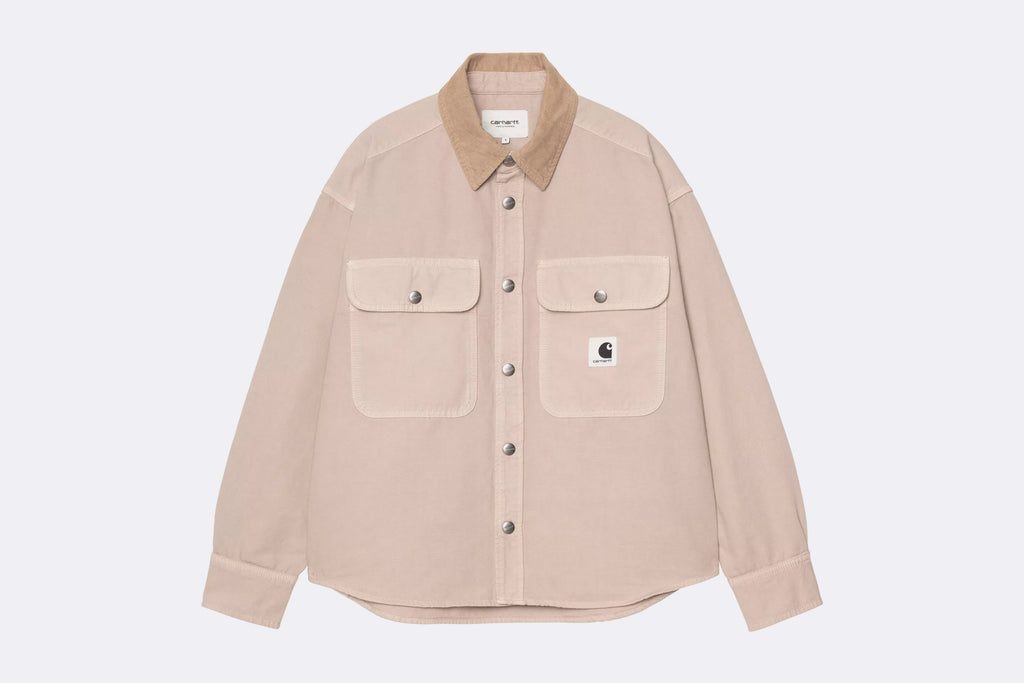 La Women's Prescott Shirt Jacket está confeccionada en lona de algodón de peso medio y sin forro, que se ha teñido en prenda para otorgarle un tacto más suave y una configuración de color más compleja. La prenda tiene un cuello de pana, así como dos bolsillos en el pecho con botón. Una etiqueta cuadrada tejida completa el diseño.