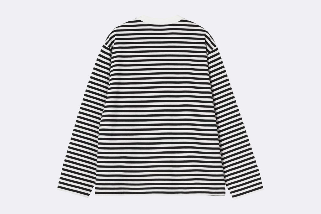 La Women's L/S Ezra T-Shirt se ha confeccionado en punto de algodón de peso medio a rayas y presenta un corte holgado. El pecho está adornado con un bordado gráfico.